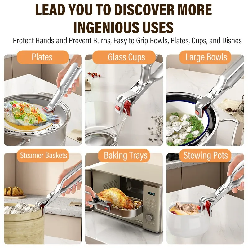 Stainless Steel Gripper Clips Hot Dish Plate Anti-Scald Clip Non-Slip Bowls Clamp Holder for Frying Pans Air Fryer Steamers Oven
